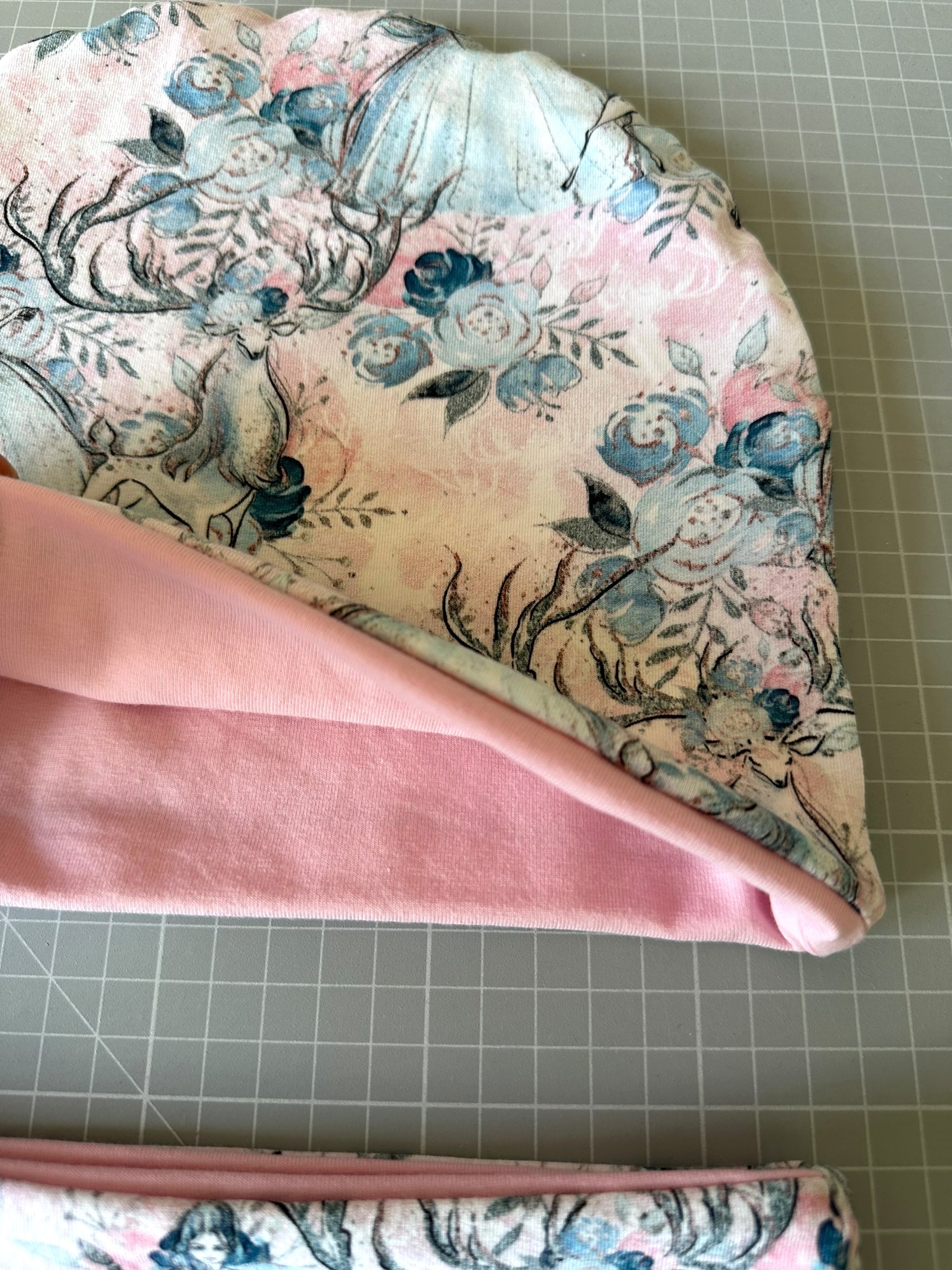 Cappello e scaldacollo bambina fatto a mano in maniera artigianale, in jersey di cotone certificato Oeko Tex- 95% cotone, 5 % elastane.