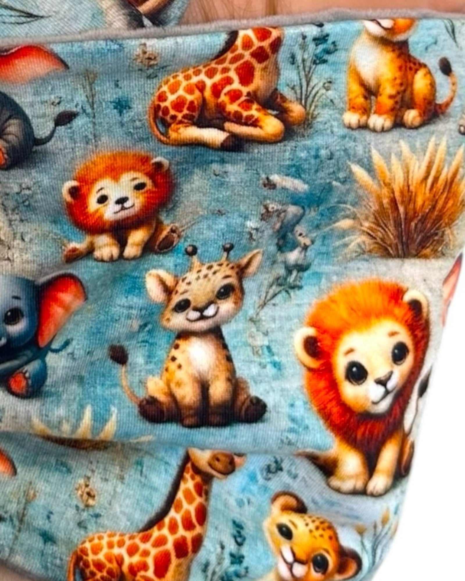 Cappello e scaldacollo bambino fatto a mano in jersey di cotone certificato Oeko Tex- 95% cotone, 5 % elastane.