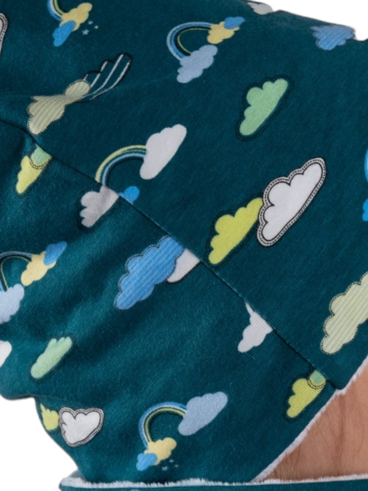 Cappello e scaldacollo bambino fatto a mano in jersey di cotone certificato Oeko Tex- 95% cotone, 5 % elastane.