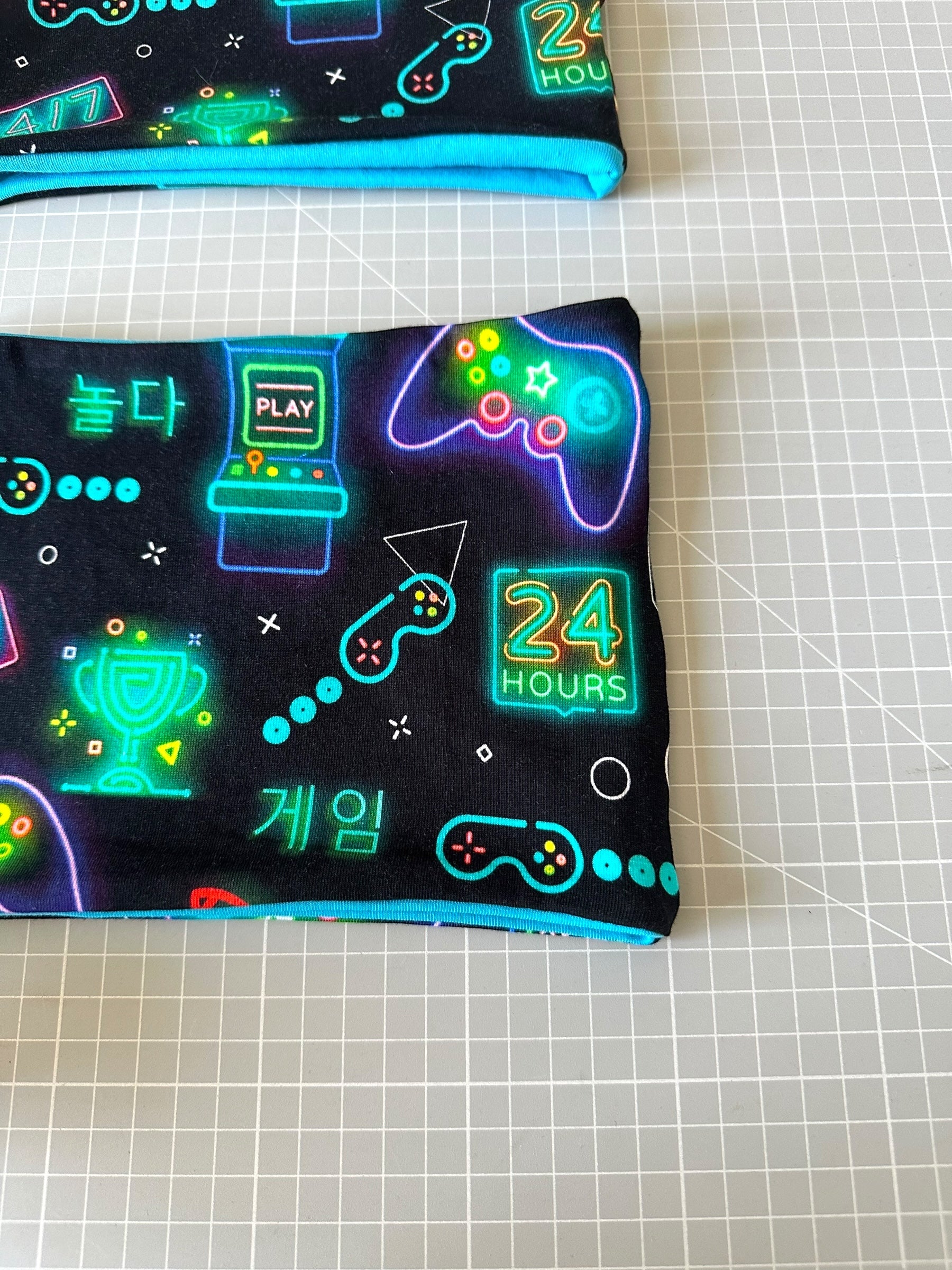 Cappello e scaldacollo bambino fatto a mano in maniera artigianale, in jersey di cotone certificato Oeko Tex- 95% cotone, 5 % elastane.