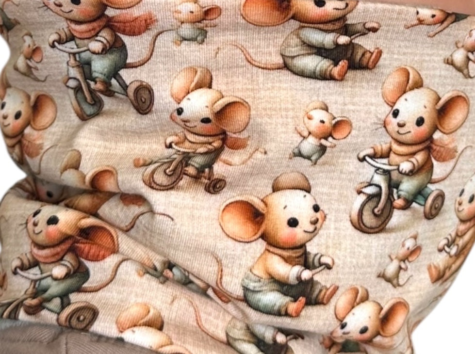 Set cappello e scaldacollo fatto a mano in cotone certificato, decorato con una dolce fantasia di topini. Morbido, sicuro e confortevole, è perfetto per i bambini ed è adatto sia ai maschietti che alle femminucce. Un accessorio artigianale unico, pensato per unire praticità, qualità e tenerezza in ogni dettaglio.